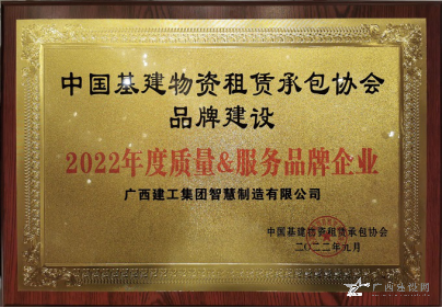 廣西建工集團(tuán)智慧制造有限公司榮獲“2022年度質(zhì)量服務(wù)品牌企業(yè)”,公司董事長(zhǎng)、黨總支書(shū)記李日紅榮獲“2022 年全國(guó)基建物資租賃承包行業(yè)杰出創(chuàng)新人才”稱號(hào)。